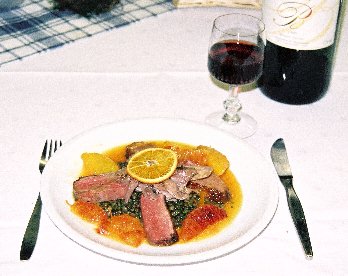 Für vier Personen sollte man mit 2 - 3 Entenbrüsten rechnen. Diese mit Salz und Pfeffer würzen und auf der Hautseite in einer heißen Pfanne mit wenig Fett, am besten Entenschmalz, anbraten, bis das Fett der Brust fast vollständig ausgelassen ist. Dann kurz wenden. Anschließend im 70° heißen Ofen mindestens 1 Stunde (höchstens 3 Stunden!) fertig garen. Bitte keinen Heißluftofen verwenden.