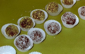 in Cocosflocken oder gehackten Pistazienkernen zu rollen.