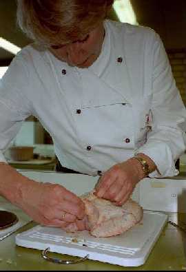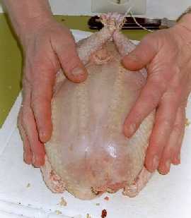 wenn man am Schenkelgelenk hineinsticht. Während des Garens von Zeit zu Zeit