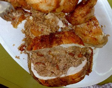 1,5 Stunden im Backofen braten, bis es goldbraun ist und klarer Saft austritt,