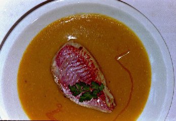 Suppe und Fisch erhalten eine zusätzliche Veredelung durch das vor dem Servieren in geringer Menge beigegebene Argan-Öl, dessen besonderer Geschmack dem Gericht eine weitere Note hinzufügt.